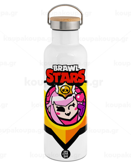 Brawl Stars Melodie, Stainless steel White with wooden lid (bamboo), double wall, 750ml