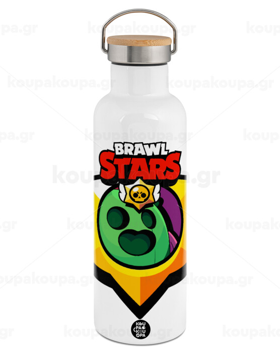 Brawl Stars Spike, Stainless steel White with wooden lid (bamboo), double wall, 750ml