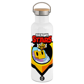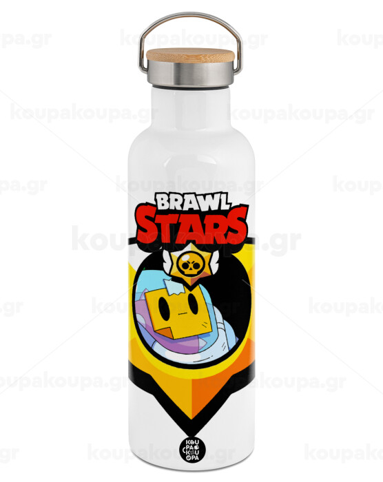 Brawl Stars Sprout, Stainless steel White with wooden lid (bamboo), double wall, 750ml