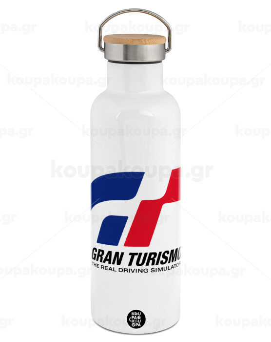gran turismo, Stainless steel White with wooden lid (bamboo), double wall, 750ml