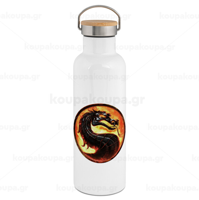 Mortal Kombat, Stainless steel White with wooden lid (bamboo), double wall, 750ml