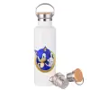 Sonic the hedgehog, Stainless steel White with wooden lid (bamboo), double wall, 750ml
