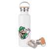 Super mario Luigi win, Stainless steel White with wooden lid (bamboo), double wall, 750ml