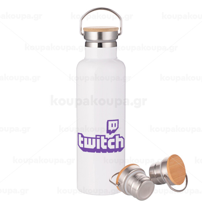 Twitch, Stainless steel White with wooden lid (bamboo), double wall, 750ml