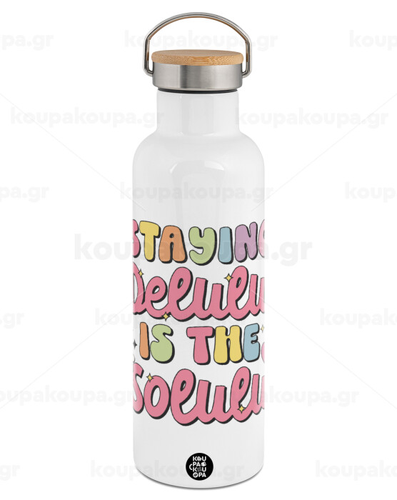 Delulu, Stainless steel White with wooden lid (bamboo), double wall, 750ml