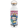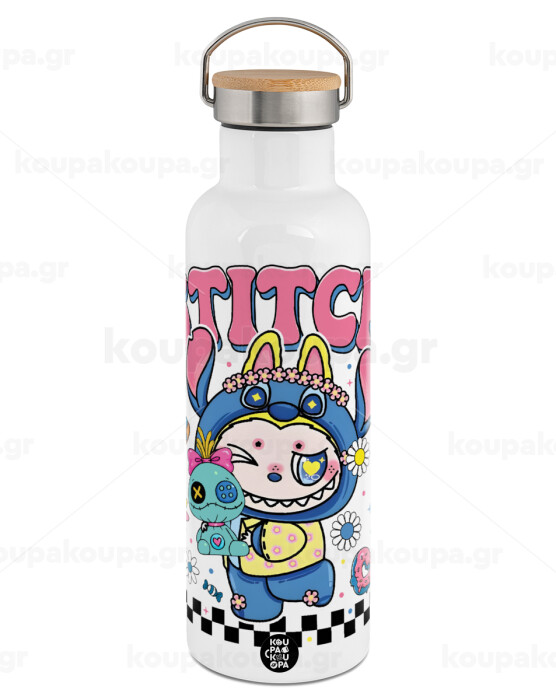Labubu Stitch, Stainless steel White with wooden lid (bamboo), double wall, 750ml