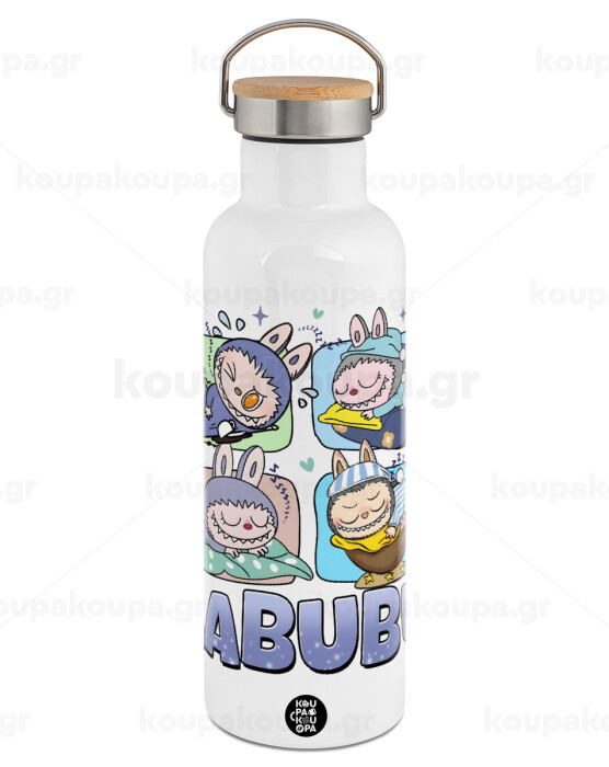 Labubu, Stainless steel White with wooden lid (bamboo), double wall, 750ml