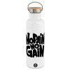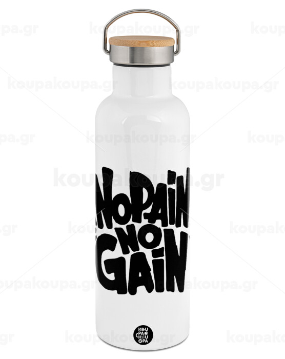 No pain no gain, Stainless steel White with wooden lid (bamboo), double wall, 750ml