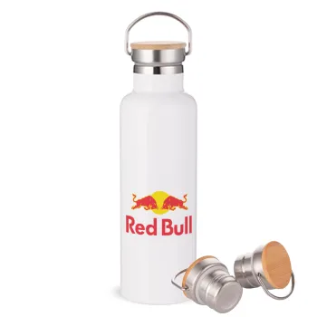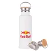 Redbull, Stainless steel White with wooden lid (bamboo), double wall, 750ml