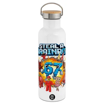 Steal a Brainrot 67 Roblox Style, Stainless steel White with wooden lid (bamboo), double wall, 750ml