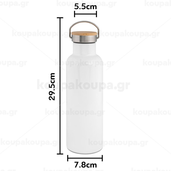 Size matters, Stainless steel White with wooden lid (bamboo), double wall, 750ml
