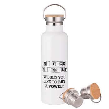 Wheel of fortune, go f..k yourself, Stainless steel White with wooden lid (bamboo), double wall, 750ml