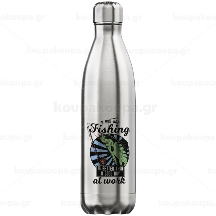 A bad day FISHING is better than a good day at work, Inox (Stainless steel) hot metal mug, double wall, 750ml