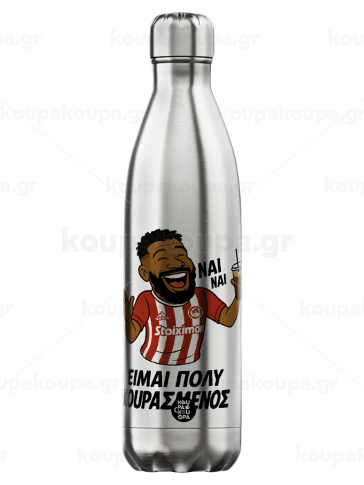 Ροντινέι, "ΠΟΛΥ ΚΟΥΡΑΣΜΕΝΟΣ", Inox (Stainless steel) hot metal mug, double wall, 750ml