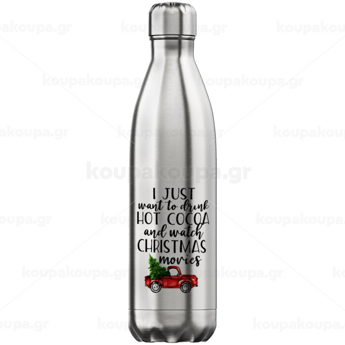 I just want to drink hot cocoa and watch christmas movies pickup car, Inox (Stainless steel) hot metal mug, double wall, 750ml