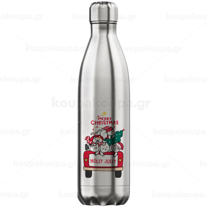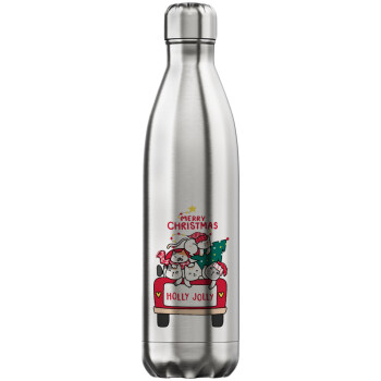 Merry Christmas cats in car, Inox (Stainless steel) hot metal mug, double wall, 750ml