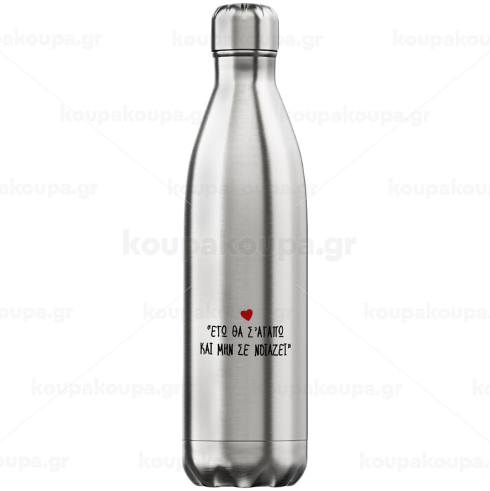 ΕΓΩ ΘΑ Σ’ΑΓΑΠΩ ΚΑΙ ΜΗΝ ΣΕ ΝΟΙΑΖΕΙ..., Inox (Stainless steel) hot metal mug, double wall, 750ml