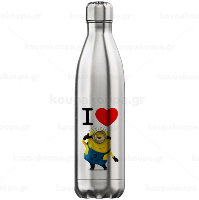 I love by minion, Inox (Stainless steel) hot metal mug, double wall, 750ml