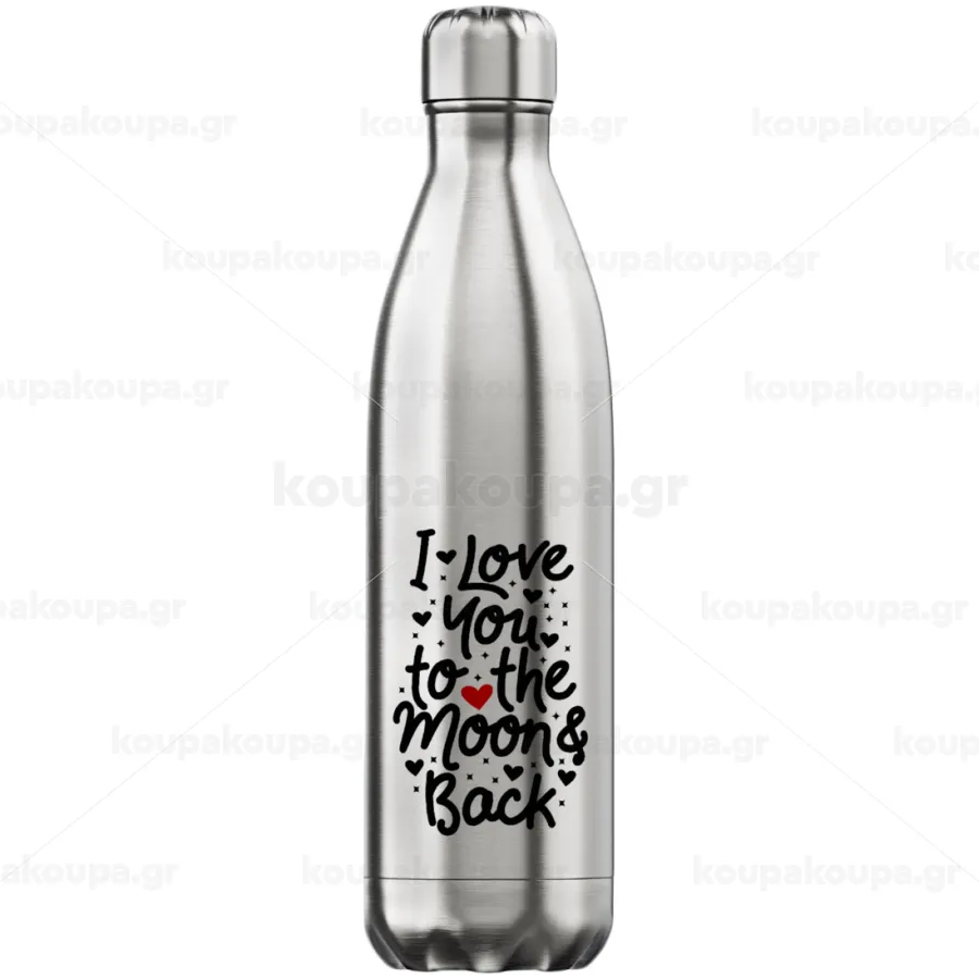 I love you to the moon and back with hearts, Inox (Stainless steel) hot metal mug, double wall, 750ml