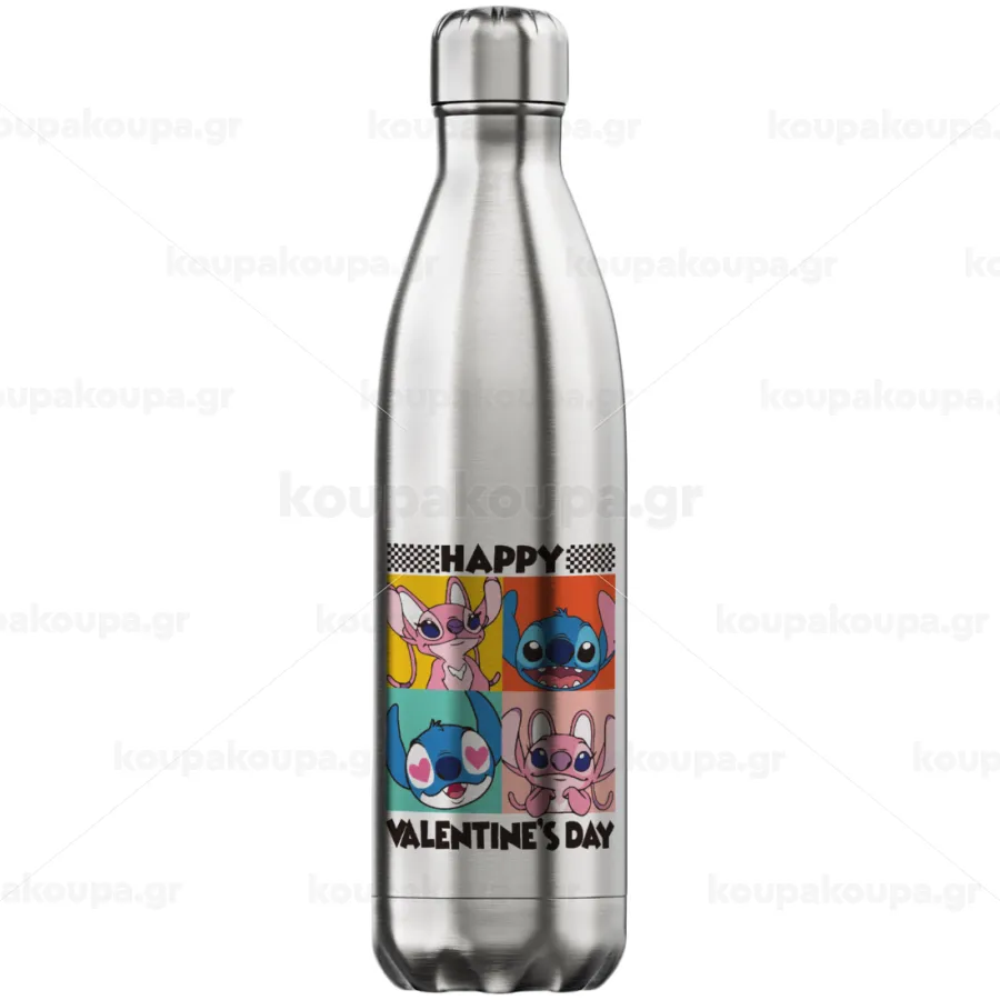 Lilo & Stitch Happy valentines day, Inox (Stainless steel) hot metal mug, double wall, 750ml