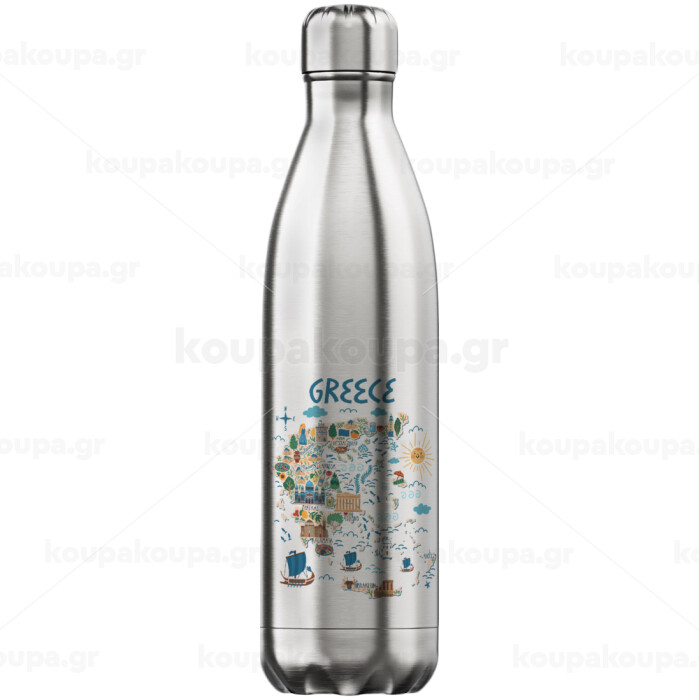 Greek map, Inox (Stainless steel) hot metal mug, double wall, 750ml