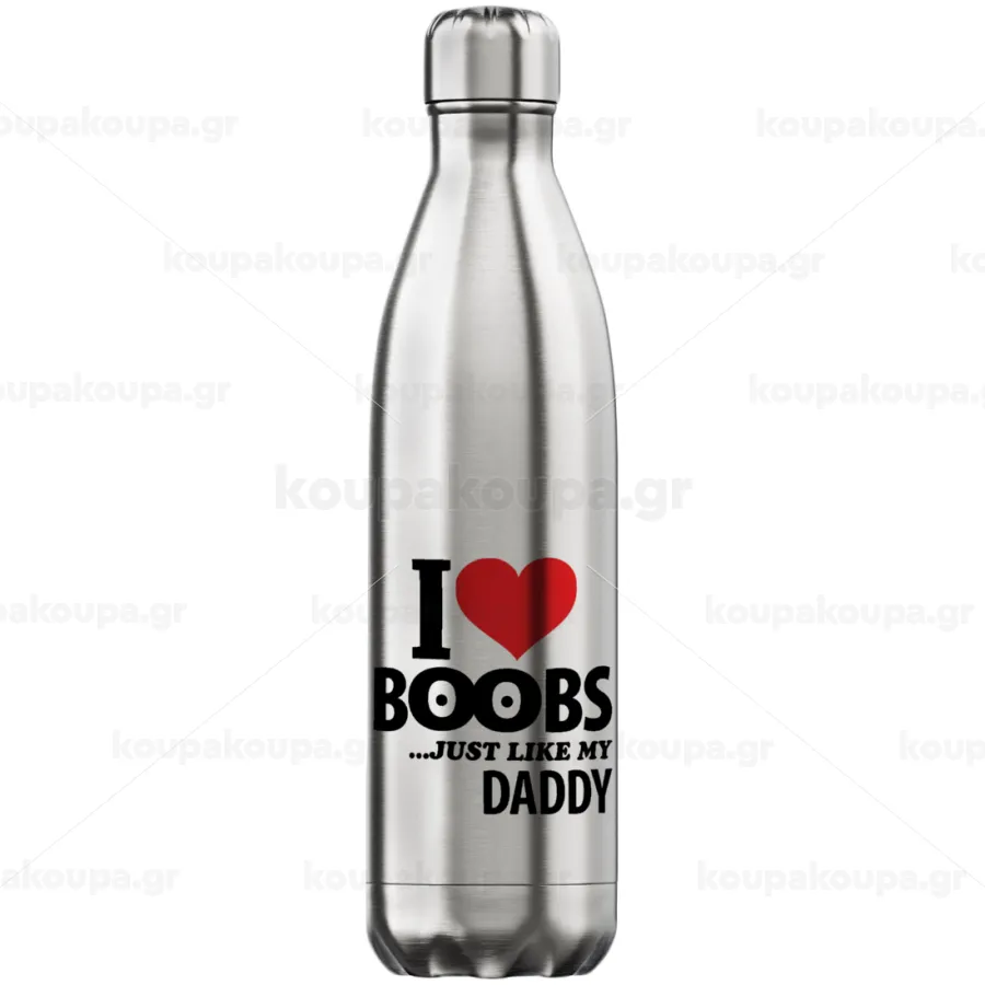 I Love boobs ...just like my daddy, Inox (Stainless steel) hot metal mug, double wall, 750ml