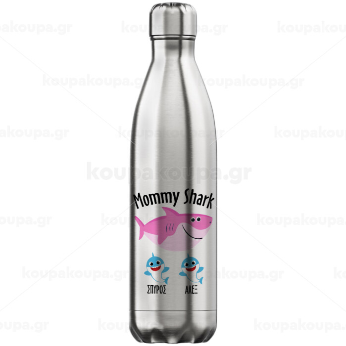 Mommy Shark (με ονόματα παιδικά), Inox (Stainless steel) hot metal mug, double wall, 750ml
