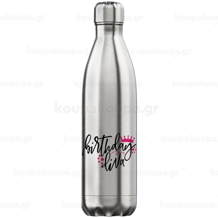 Birthday Diva queen, Inox (Stainless steel) hot metal mug, double wall, 750ml