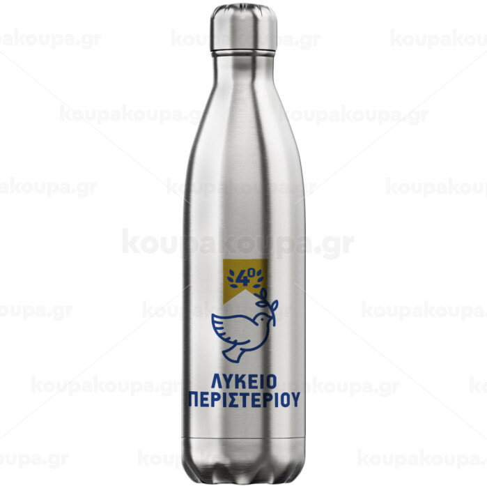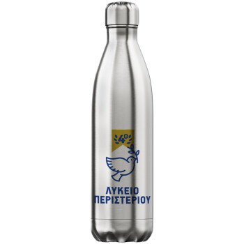 Έμβλημα Σχολικό μπλε/χρυσό περιστέρι, Inox (Stainless steel) hot metal mug, double wall, 750ml