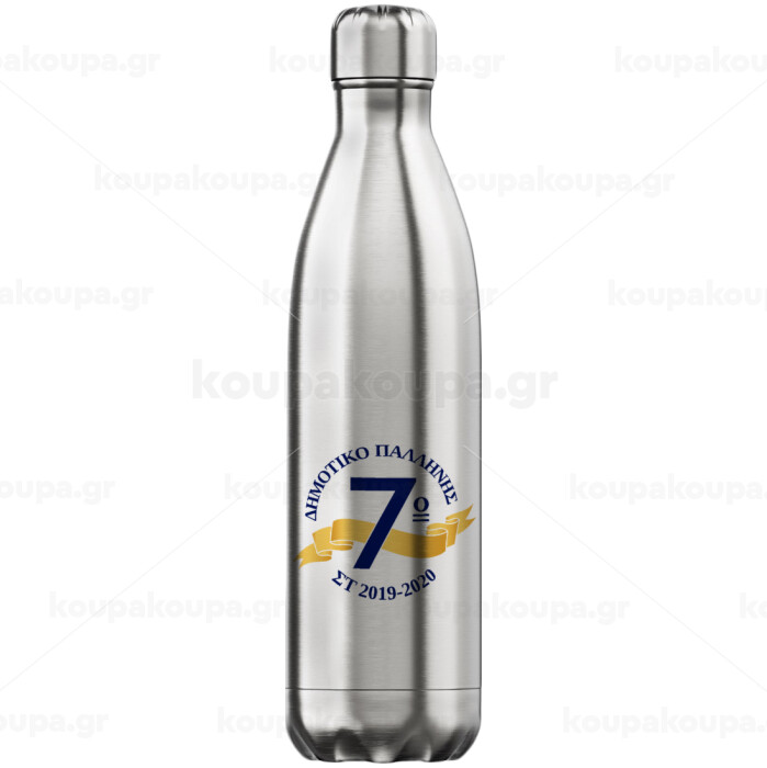 Σχολική μπλε με κορδέλα, Inox (Stainless steel) hot metal mug, double wall, 750ml