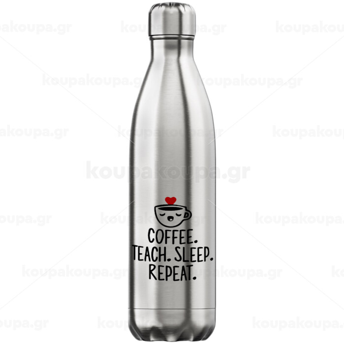 Coffee Teach Sleep Repeat, Inox (Stainless steel) hot metal mug, double wall, 750ml