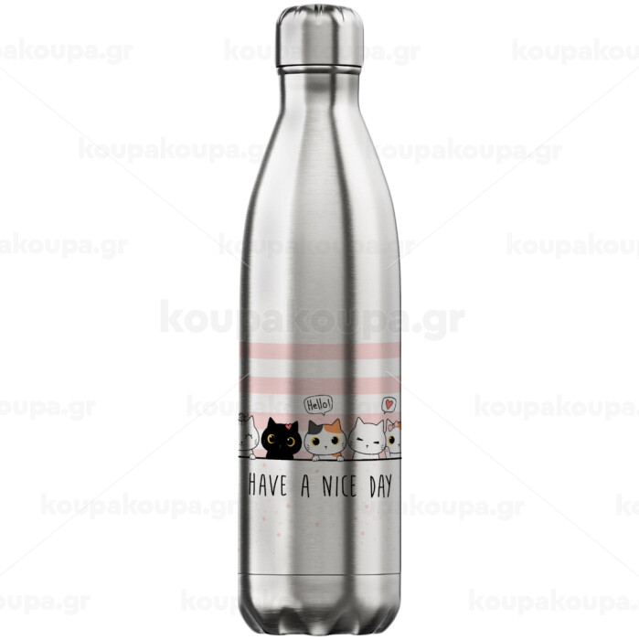 Have a nice day cats, Inox (Stainless steel) hot metal mug, double wall, 750ml