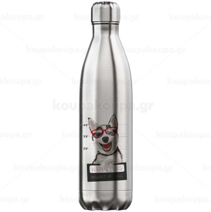 Warning, beware of Dog, Inox (Stainless steel) hot metal mug, double wall, 750ml