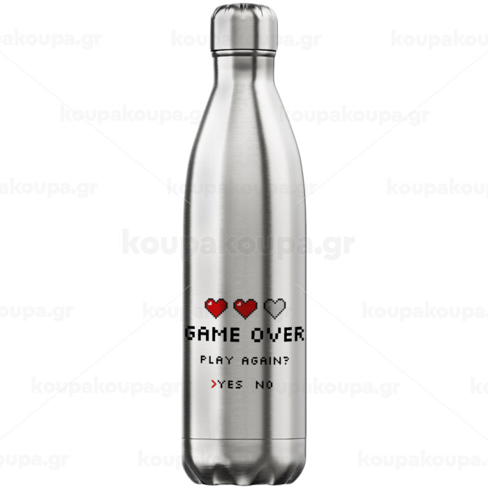 GAME OVER, Play again? YES - NO, Inox (Stainless steel) hot metal mug, double wall, 750ml