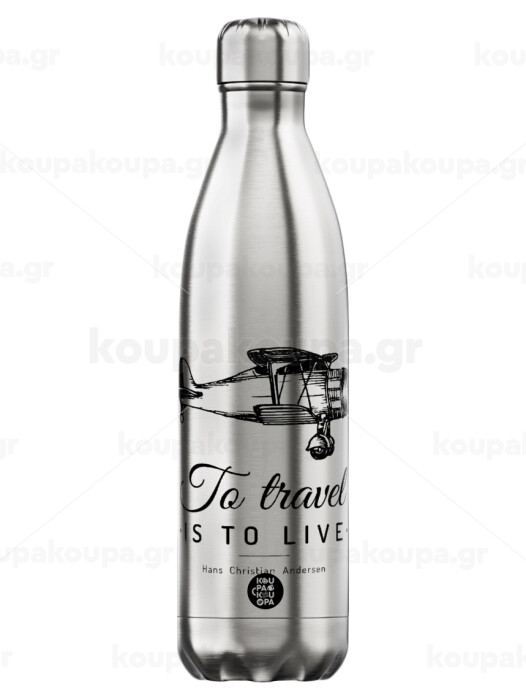 To travel is to live, Inox (Stainless steel) hot metal mug, double wall, 750ml
