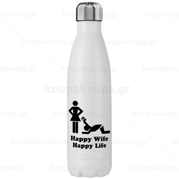Happy Wife, Happy Life, Stainless steel, double-walled, 750ml
