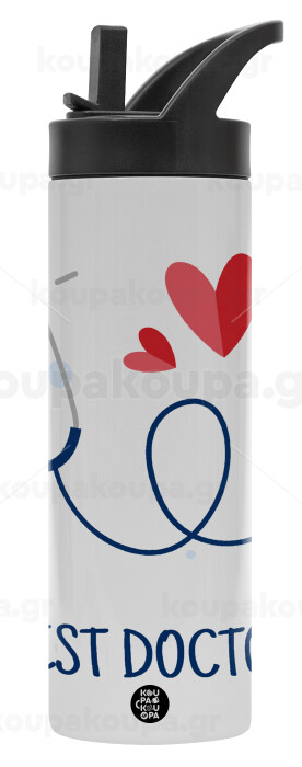 Best Doctor, Metallic thermos bottle with straw & handle, stainless steel (Stainless steel 304), double-walled, 600ml.