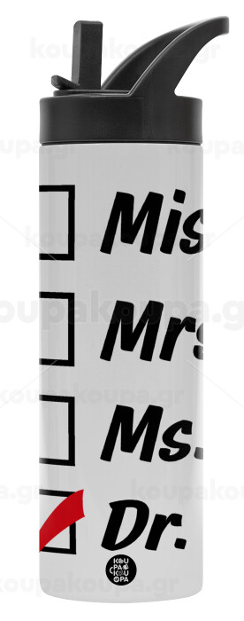 Miss, Mrs, Ms, DR, Metallic thermos bottle with straw & handle, stainless steel (Stainless steel 304), double-walled, 600ml.