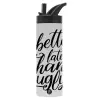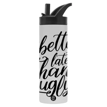 Better late than ugly, Metallic thermos bottle with straw & handle, stainless steel (Stainless steel 304), double-walled, 600ml.