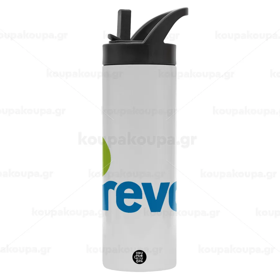 Πρατήριο καυσίμων REVOIL, Metallic thermos bottle with straw & handle, stainless steel (Stainless steel 304), double-walled, 600ml.