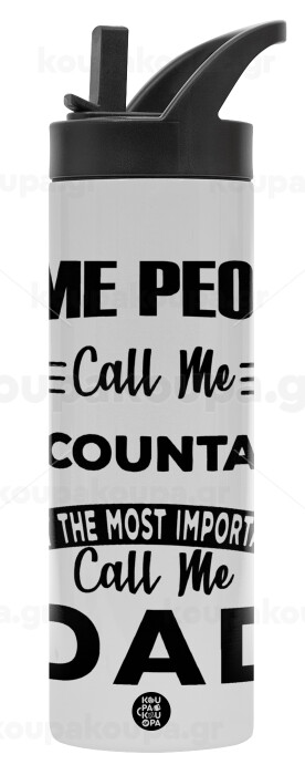 Some people call me accountant, Metallic thermos bottle with straw & handle, stainless steel (Stainless steel 304), double-walled, 600ml.