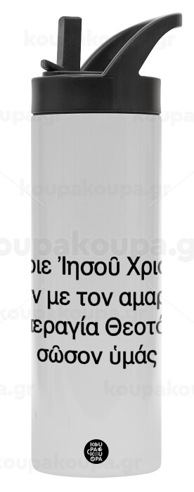 Προσευχή του Ιησού, Metallic thermos bottle with straw & handle, stainless steel (Stainless steel 304), double-walled, 600ml.