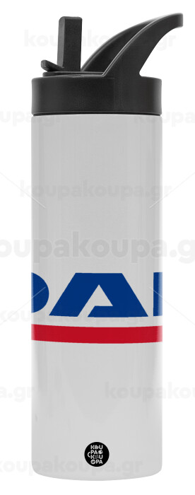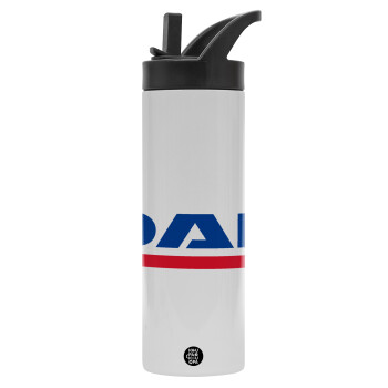 DAF, Metallic thermos bottle with straw & handle, stainless steel (Stainless steel 304), double-walled, 600ml.
