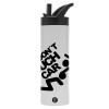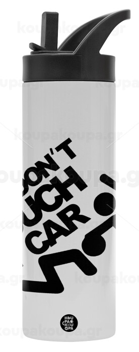 Don't touch my car, Metallic thermos bottle with straw & handle, stainless steel (Stainless steel 304), double-walled, 600ml.