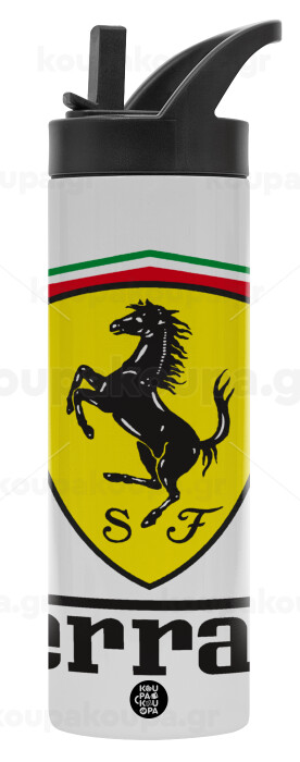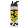 Ferrari S.p.A., Metallic thermos bottle with straw & handle, stainless steel (Stainless steel 304), double-walled, 600ml.