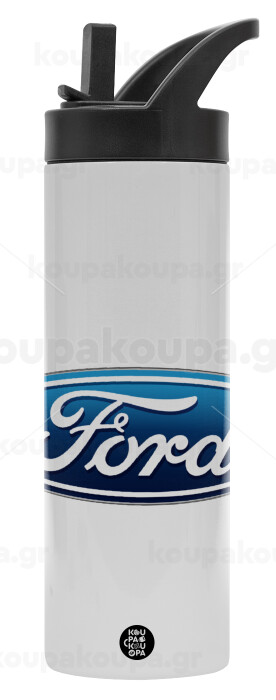 Ford, Metallic thermos bottle with straw & handle, stainless steel (Stainless steel 304), double-walled, 600ml.