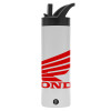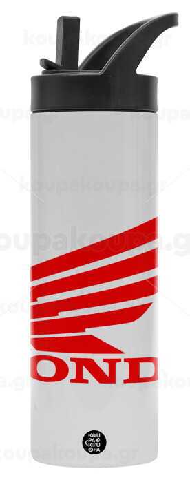 Honda, Metallic thermos bottle with straw & handle, stainless steel (Stainless steel 304), double-walled, 600ml.