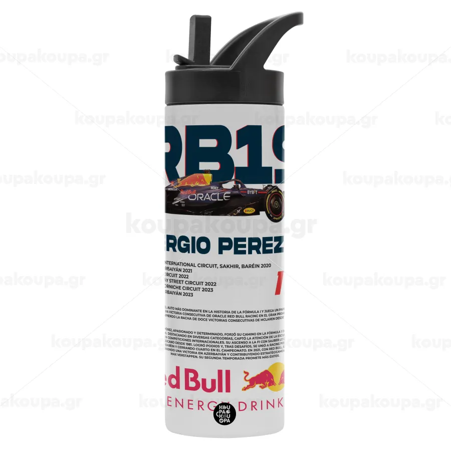 Redbull Sergio Perezi, Metallic thermos bottle with straw & handle, stainless steel (Stainless steel 304), double-walled, 600ml.