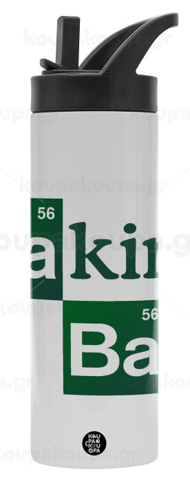 Baking Bad, Metallic thermos bottle with straw & handle, stainless steel (Stainless steel 304), double-walled, 600ml.