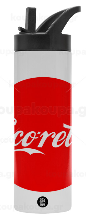Cocoretsi, Metallic thermos bottle with straw & handle, stainless steel (Stainless steel 304), double-walled, 600ml.